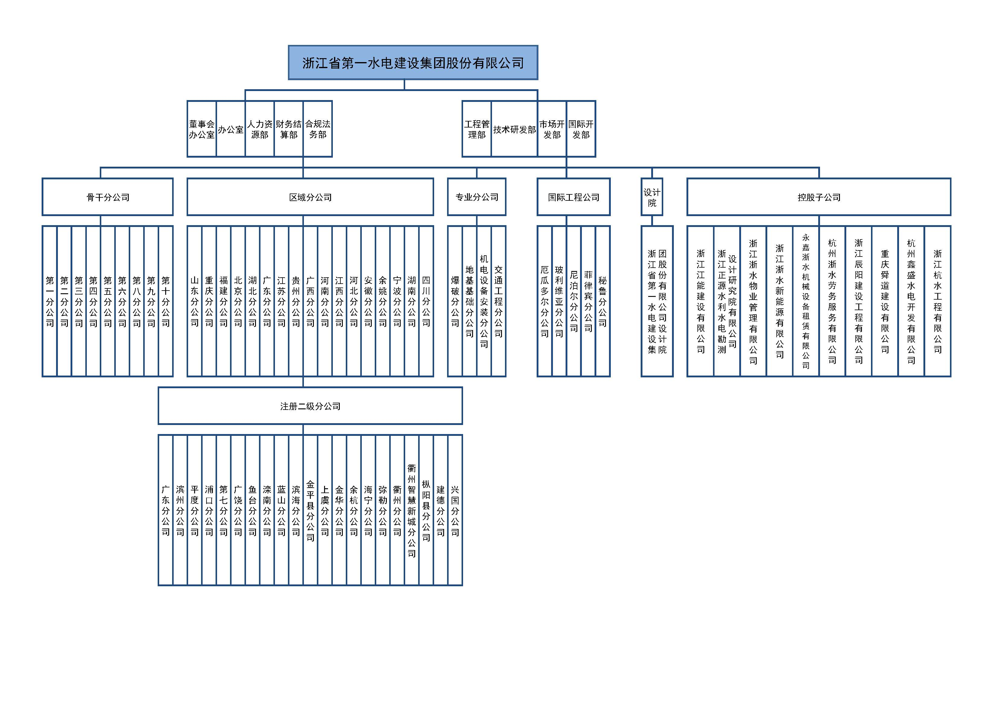 浙江省第一水电建设集团股份有限公司,简称浙水股份,是一家以建筑施工为主的企业集团,成立于1965年,前身为浙江省水电建筑第一工程处。2011年11月,公司更名为浙江省第一水电建设集团股份有限公司。2018年,公司成功通过国家高新技术企业审批,迈入国家高新技术企业行列。2020年,“浙水大厦”落成并投入使用,公司以全新的形象屹立于滨江。