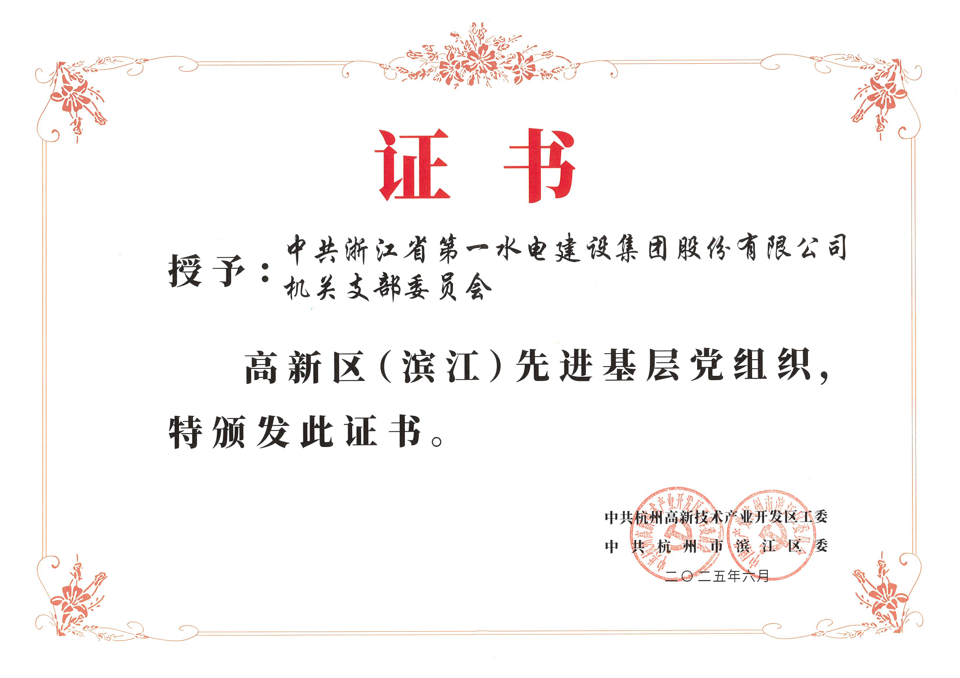 近日,区委组织部对杭州市高新区(滨江)“两优一先”获奖单位及个人进行了表彰。集团机关党支部被授予“先进基层党组织”荣誉称号,充分彰显了机关党支部在组织建设、党建引领等方面的卓越成效。